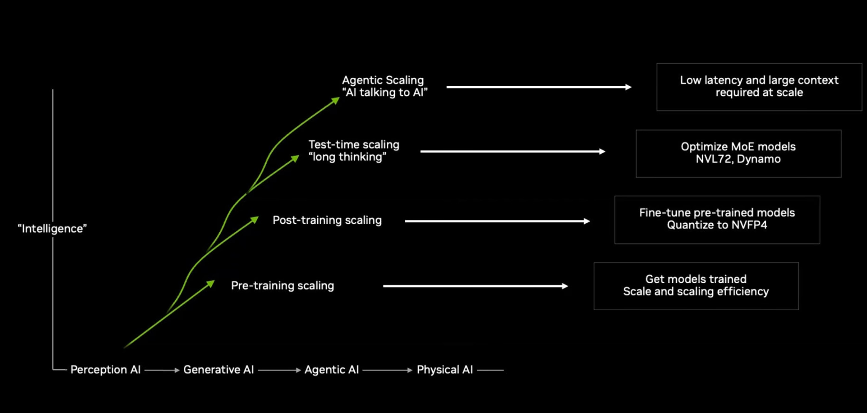 Đó không phải là taxonomy học thuật cố định của toàn ngành, nhưng nó là một cách diễn giải rất hữu ích để hiểu điều gì đang xảy ra. NVIDIA hiện mô tả bức tranh scaling hiện đại qua ba lớp chính là pretraining scaling, post-training scaling và test-time scaling; đến năm 2026, trong các công bố hạ tầng mới, hãng này còn đẩy mạnh thêm khái niệm agentic inference / agentic AI như một mặt trận scaling tiếp theo. [3]