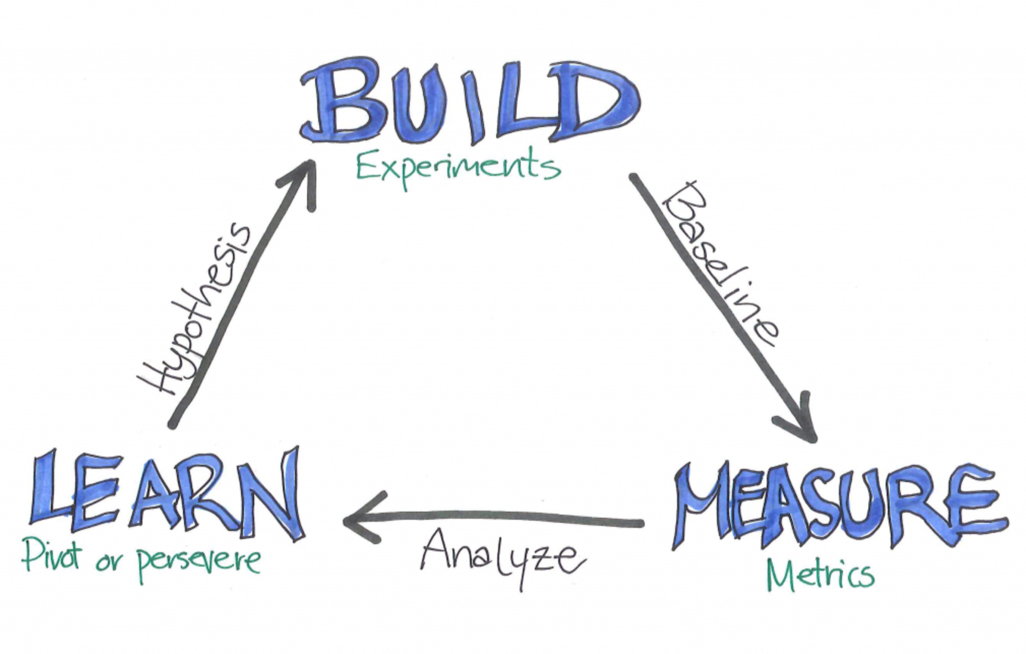 Learn -> Phân tích các feedback, data để quyết định pivot hoặc perservere, có nghĩa là đổi hướng khác hoặc tiếp tục cải tiến